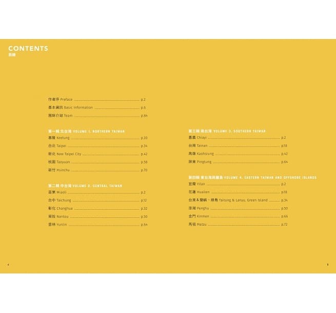 全台灣20個縣市皆分為兩部分介紹,前半部分門別類挑出450家好店,涵蓋5大類:「藝術與文化」、「設計與生活風格」、「食材與料理」、「音樂與酒精」、「住宿與放鬆」,每個分類下介紹 6家精選好店;後半部有「推薦旅遊路線」和「主題特輯」 ,幫助讀者更了解台灣文化 。如果想找特定類型店家可以參考前半部分;需要行程建議的,可以直接翻到後半部!