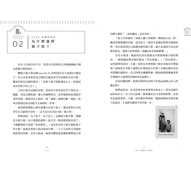 在書裡看到了許多一樣努力著的手作家們,彷彿可以看見他們閃閃發亮的眼神,同時也提供了寶貴的經驗與引人深思的提問。非常推薦給喜愛手作品,希望與手作一同生活的你!──Osmile/毛線球牧場