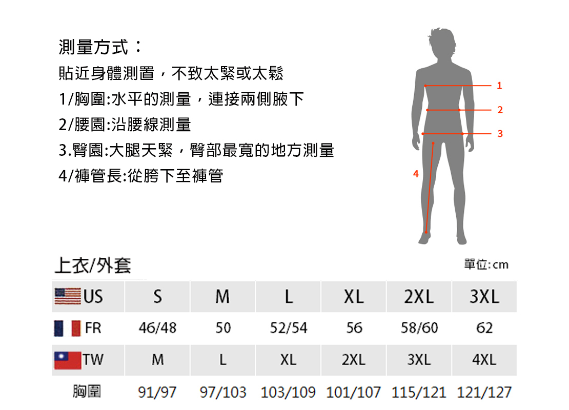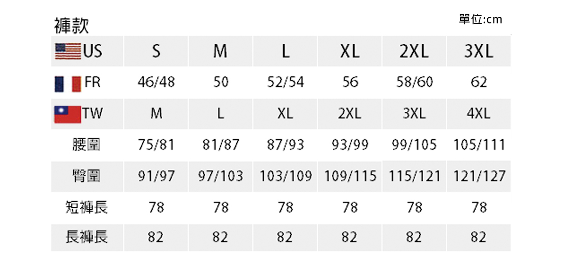 *此為品牌通用尺寸表,每款剪裁略有不同。
