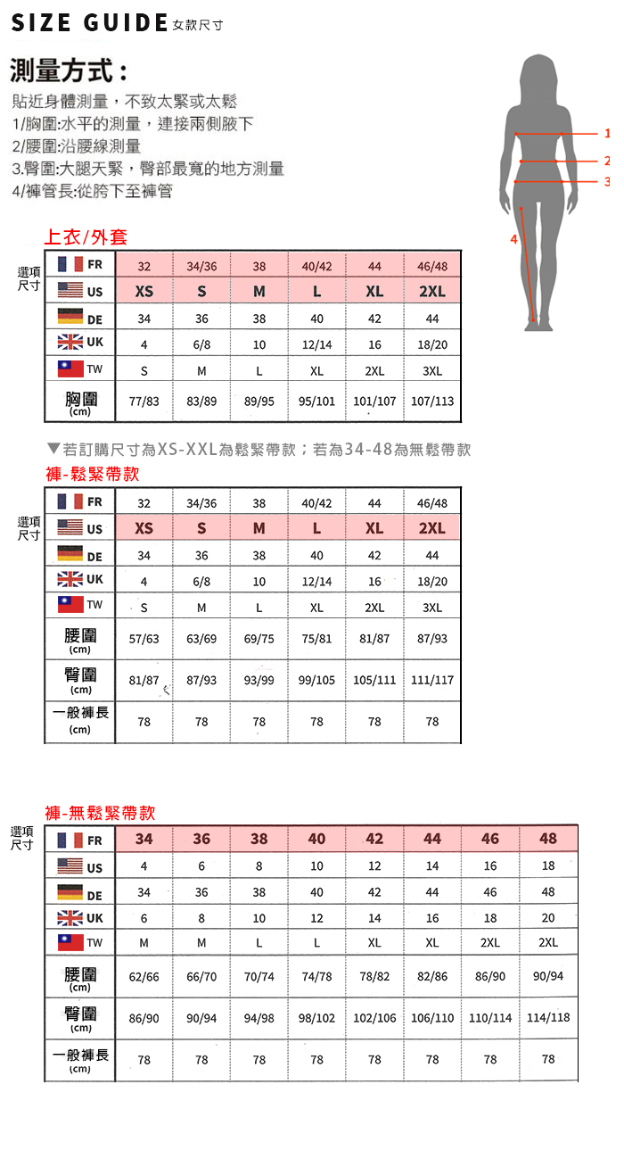 *此為品牌通用尺寸表,每款剪裁略有不同。