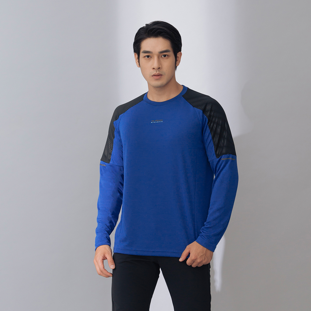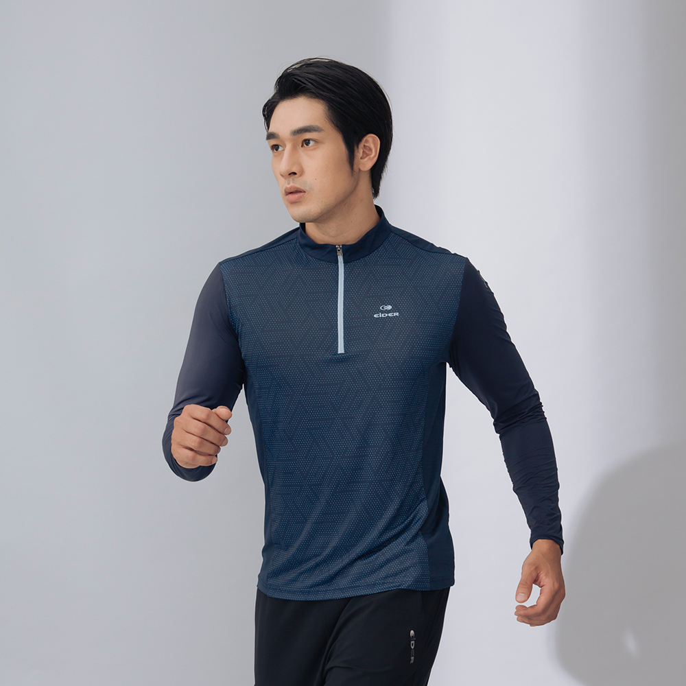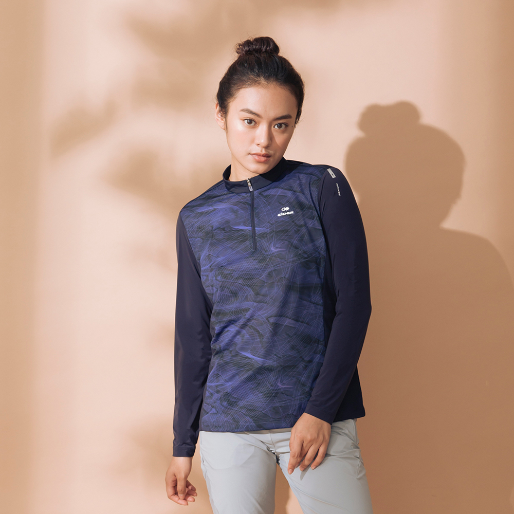 女排汗抗菌冰涼印花配色長袖立領衫 [藍、黃]