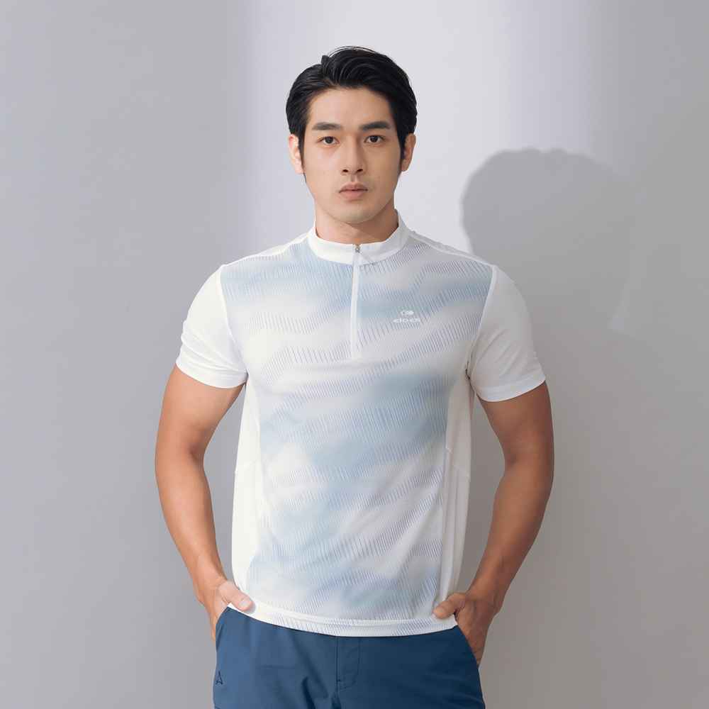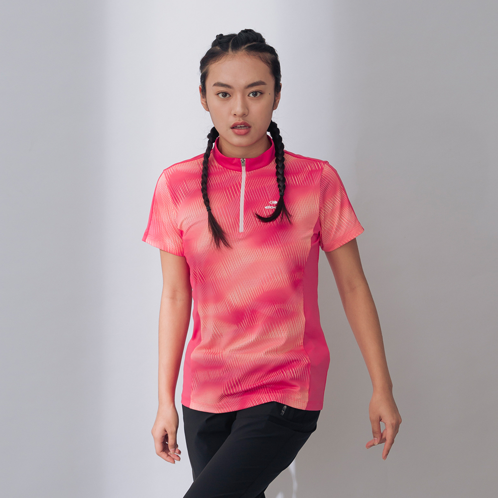 女排汗抗菌涼爽印花配色短袖立領衫 [白、桃紅]