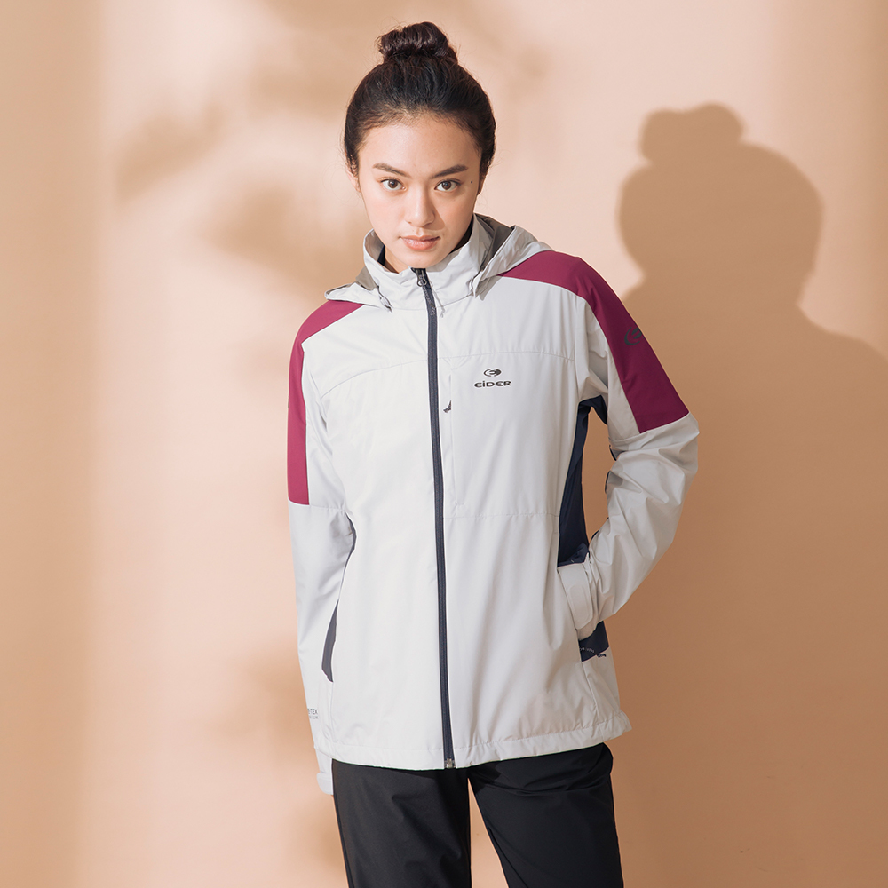 女GORE-TEX-INFINIUM防風抗水透氣連帽配色外套[拼色灰、黑]
