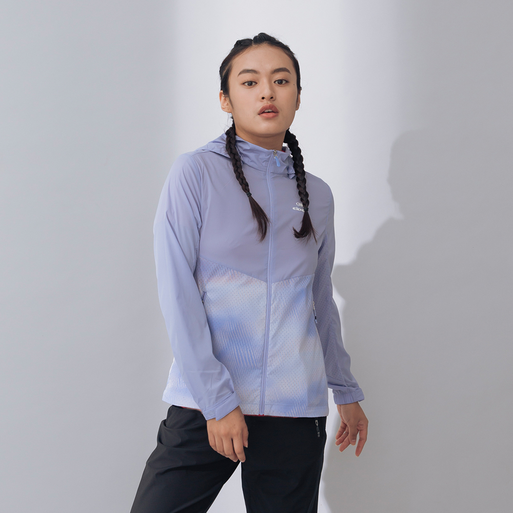 女排汗透氣防風印花配色連帽外套 [紫、藍]