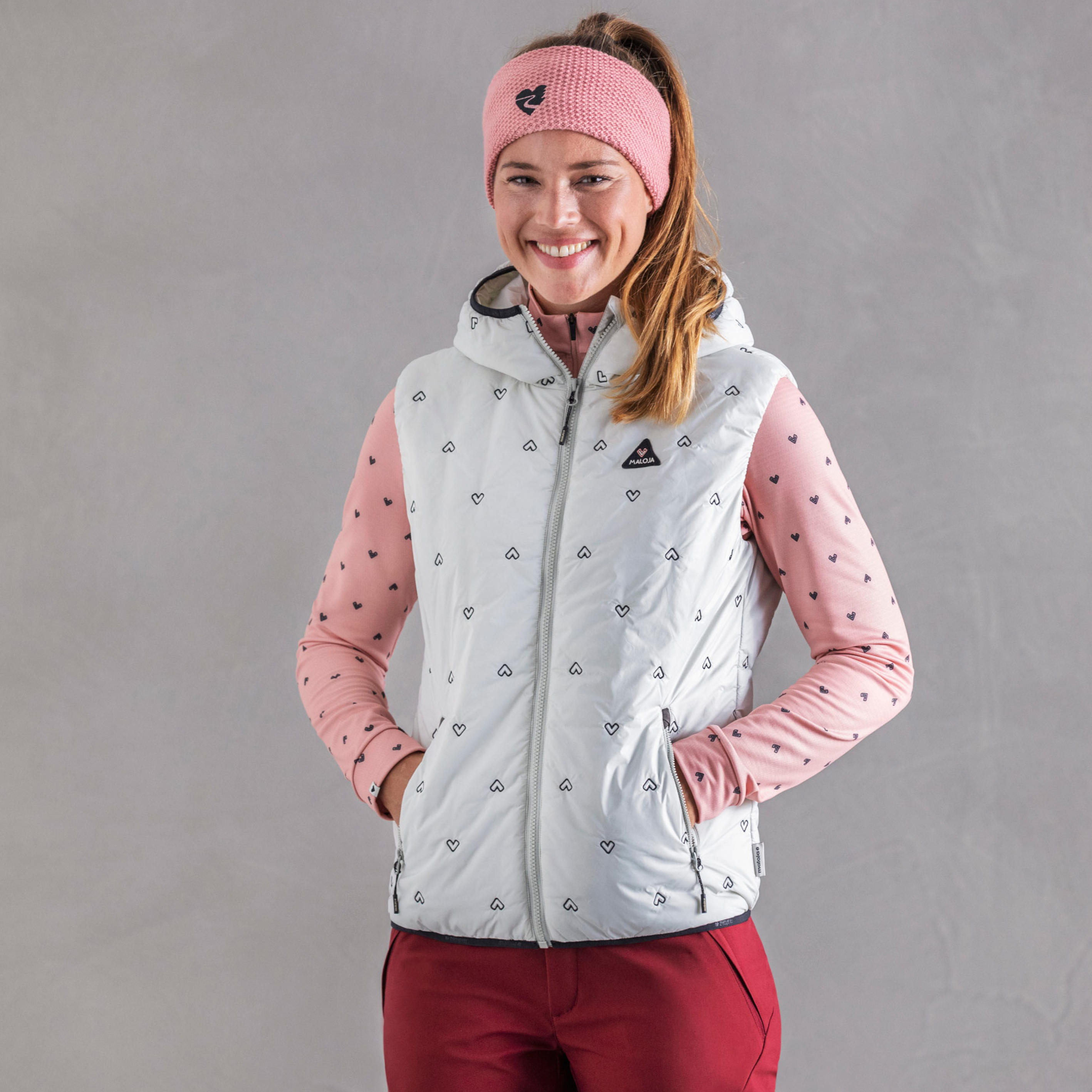 女Primaloft BIO 防風抗雪保暖透氣連帽繡花背心 / 20MA30169-櫻桃紅、霧灰白