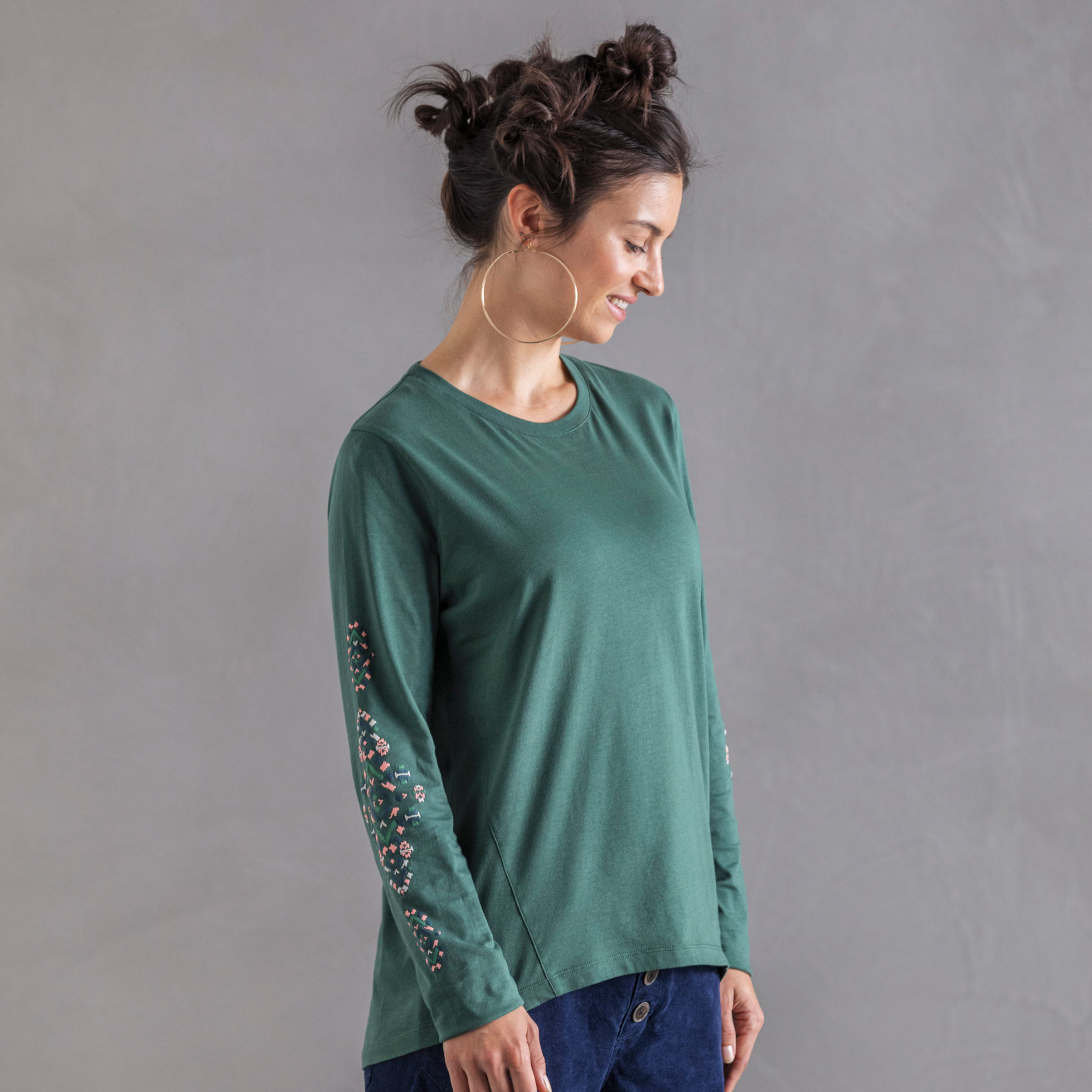 女長袖印花圓領衫 / 20MA30412-米 白、叢林綠