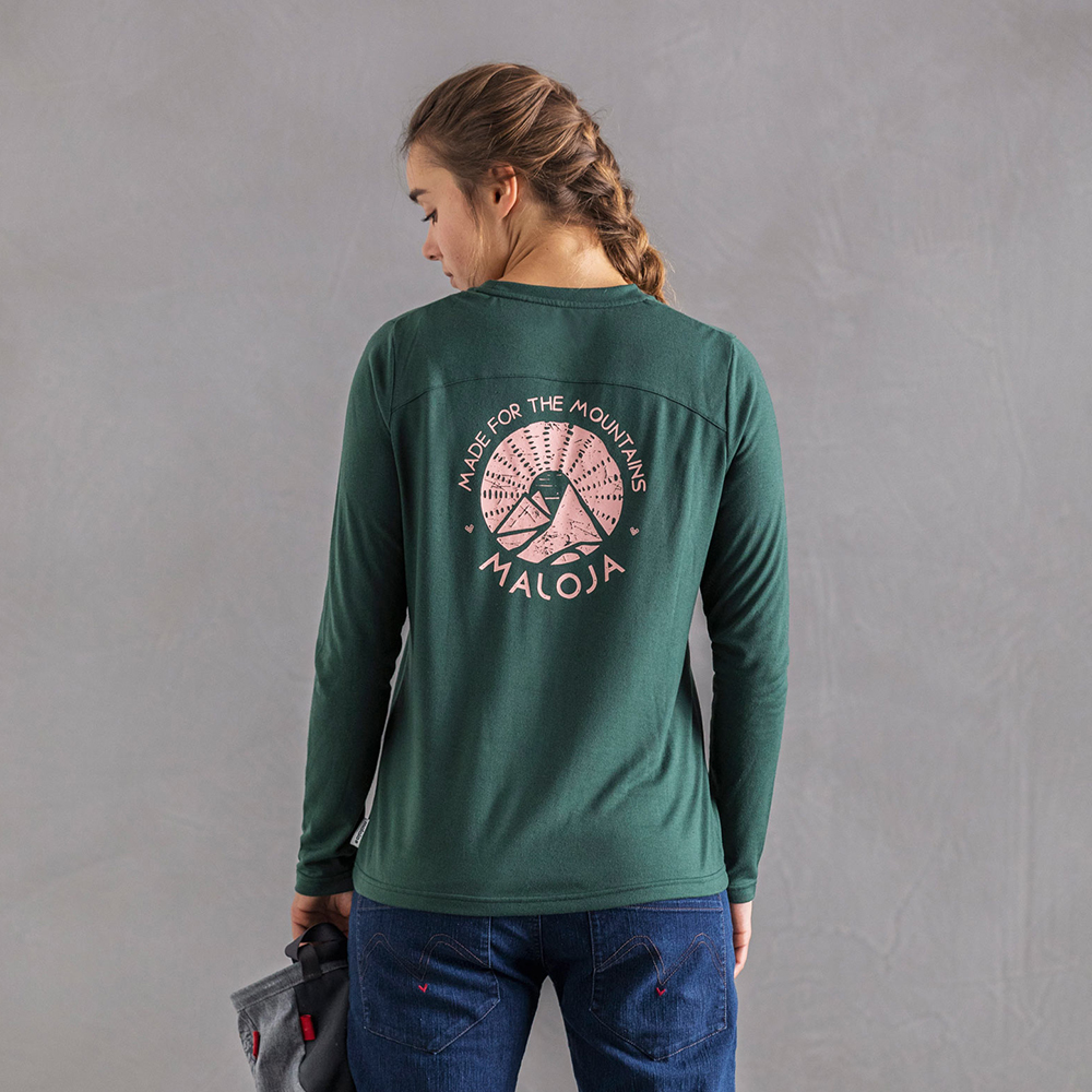 德國【MALOJA】女排汗透氣印花長袖圓領衫 / 20MA30155-月影黑、叢林綠