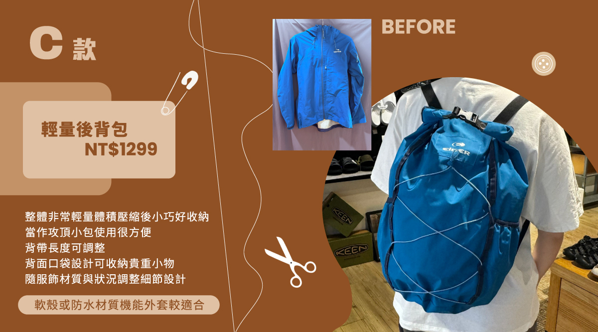 或許已不適合再穿著,但也不想繼續放在衣櫃等發霉,那麼就來個大改造!將衣物變成全新單品,如此不僅能一同展開全新的冒險故事,也可實現永續使用的理念!