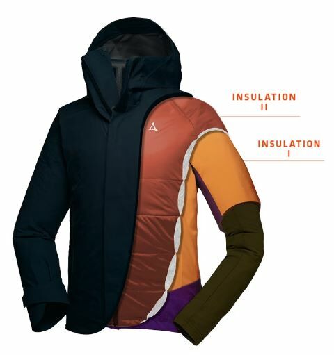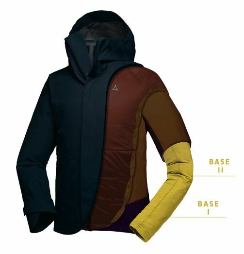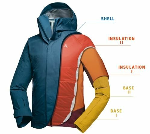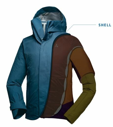 Schöffel分層系統中最外層的是硬殼外套,具有防水和防風功能,同時也具備氣體流動性能,有效地排出汗水確保外套內不積累水分。