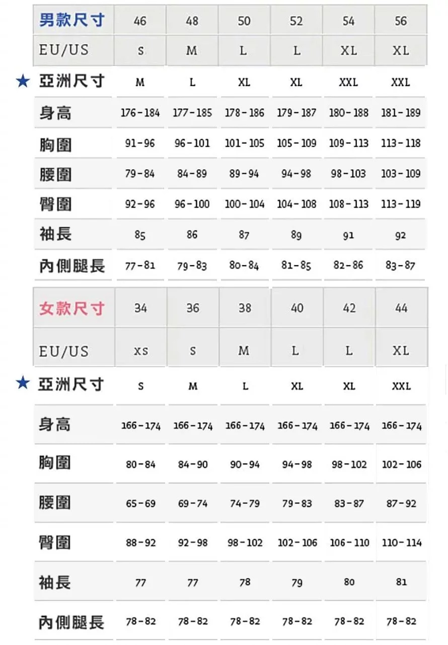 ※本建議表,經大量試穿取樣結論而出,但因每個人穿著習慣不同,故僅供參考使用。