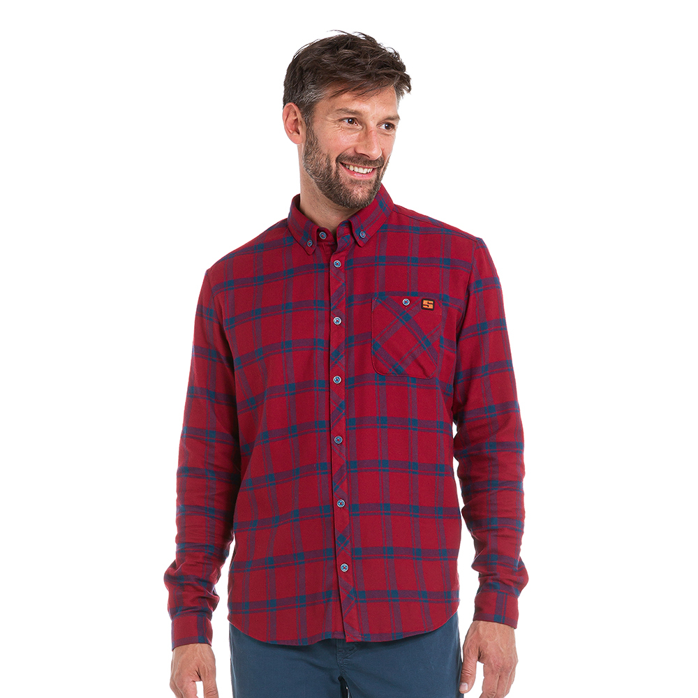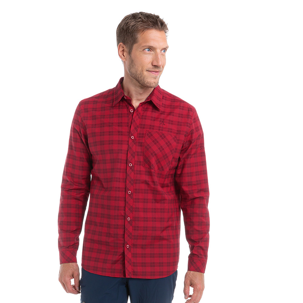 德國【Schoffel】男排汗抗UV長袖格子襯衫 / 0SL20-23047-月海藍、酒紅格