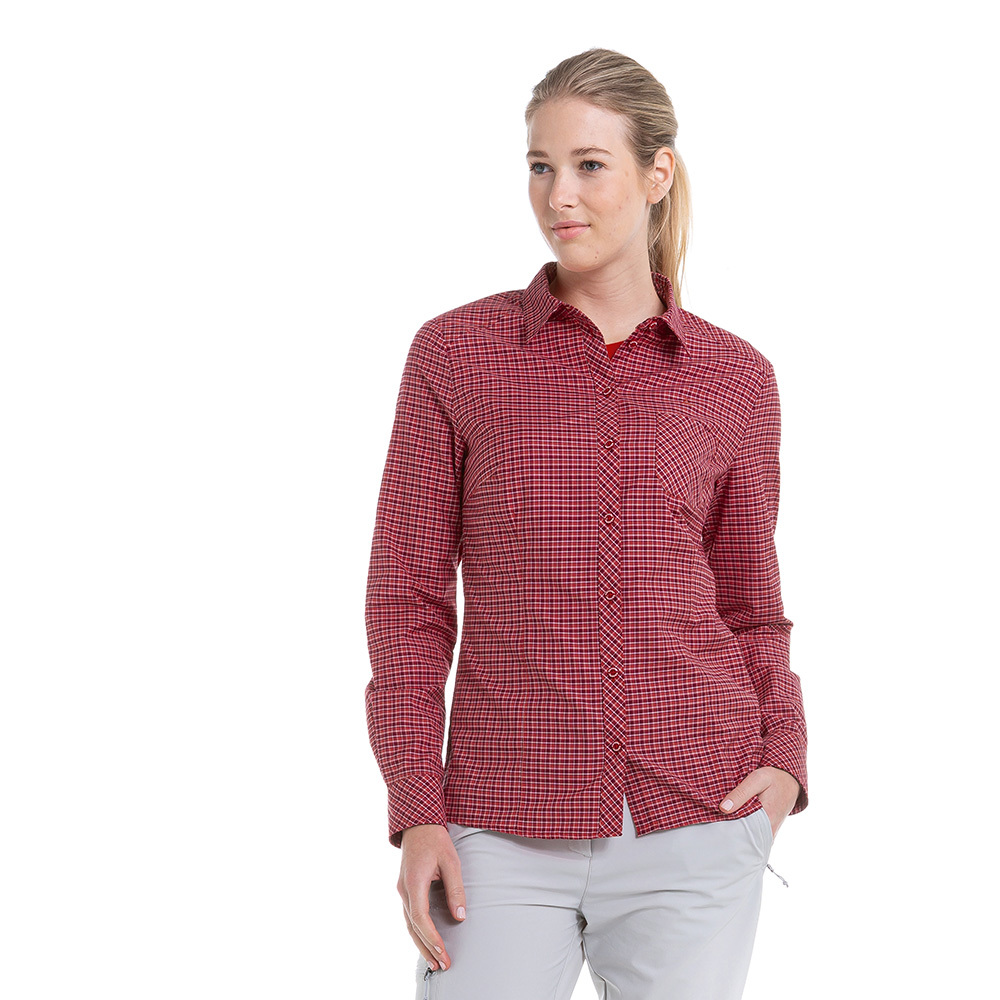 女吸濕排汗抗UV長袖細格子襯衫【UV50】 / 0SL20-12789-紅格紋