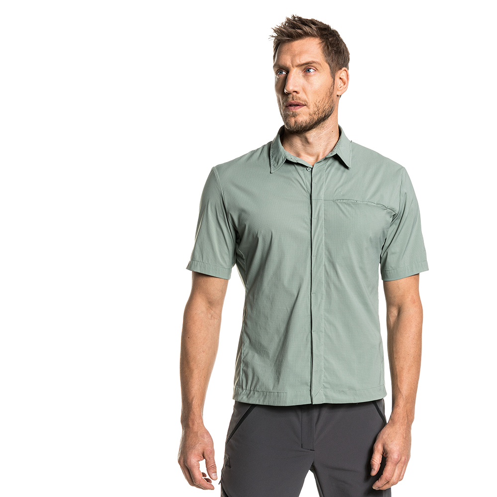 德國【Schoffel】男排汗透氣素色短袖襯衫 [灰綠、藍]