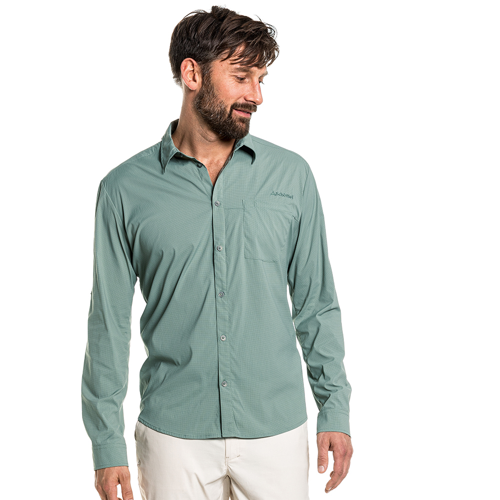 德國【Schoffel】男排汗透氣抗UV長袖素色襯衫 [灰 綠]