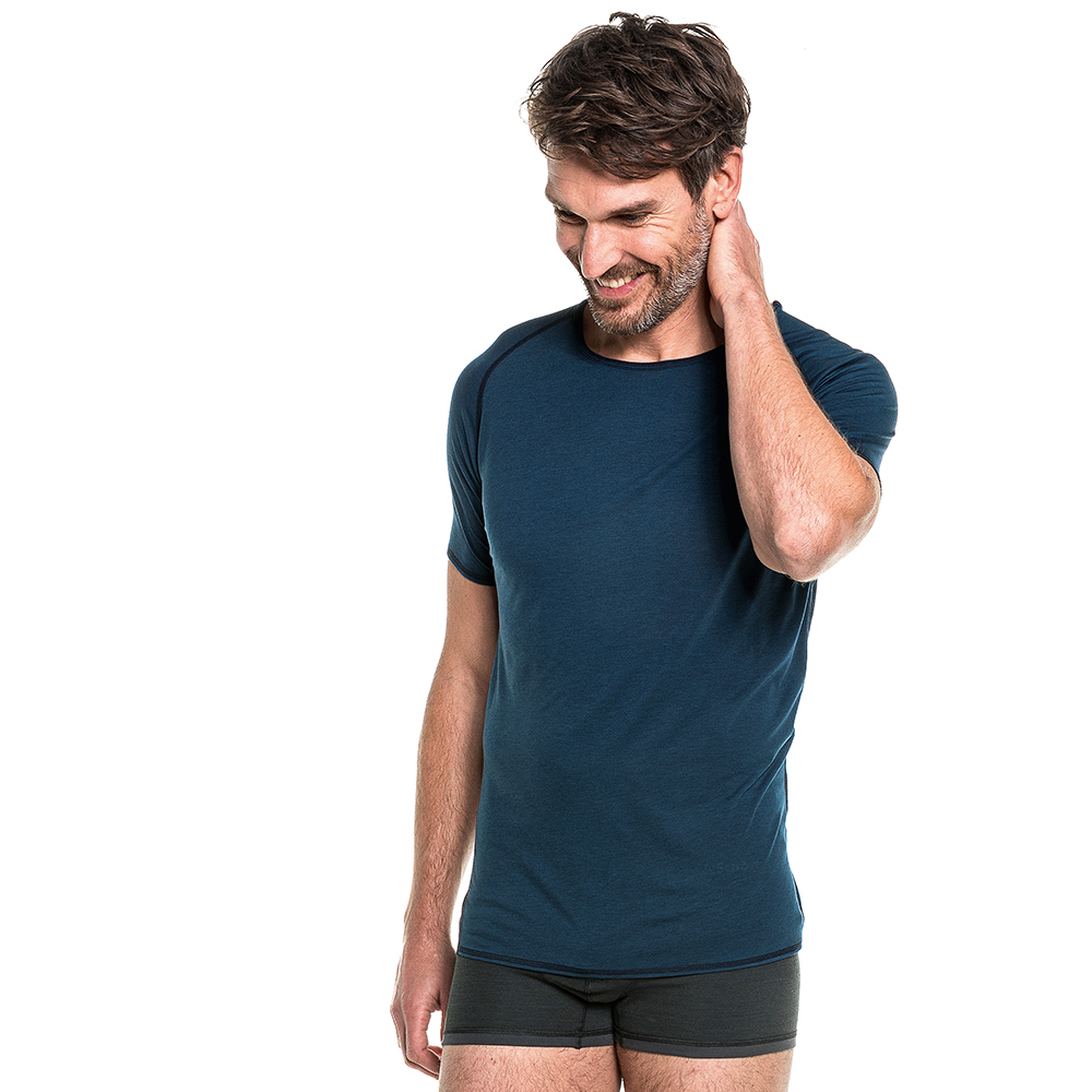 德國【Schoffel】男排汗透氣保暖羊毛短袖圓領衫 -[藍、灰]