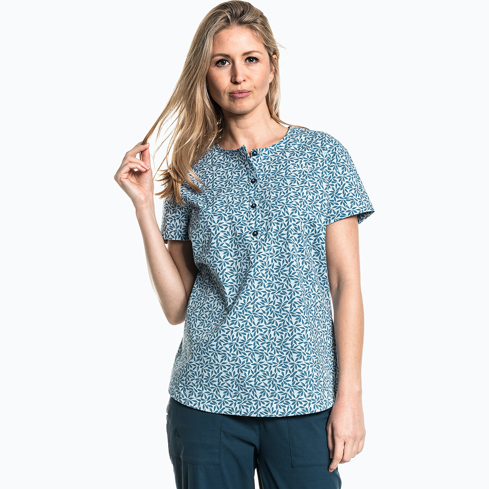 德國【Schoffel】女排汗抗UV無領短袖印花襯衫 -[紅、綠、藍]