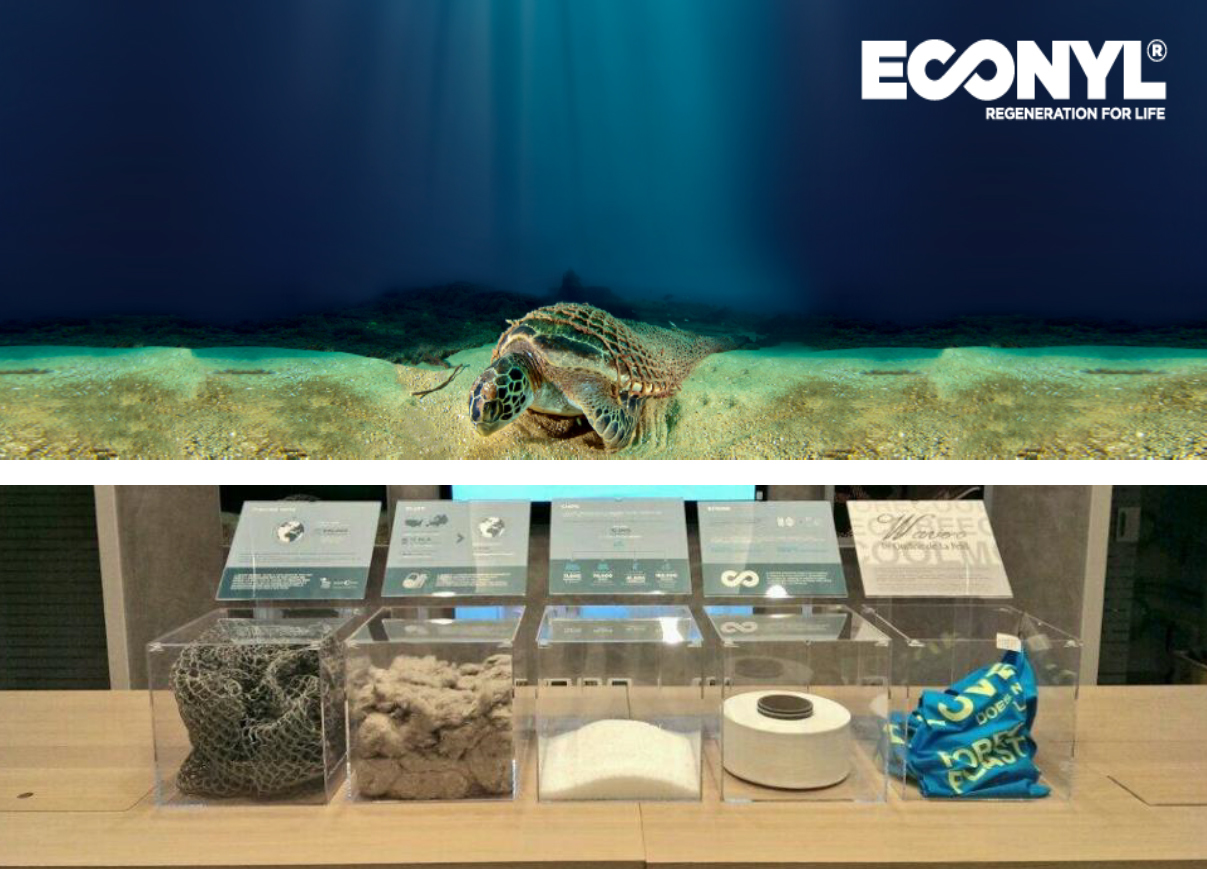 *鬼網:棄置於海洋中的無數廢棄漁網, 經潛水夫打撈, 清洗, 再生成為尼龍紗線