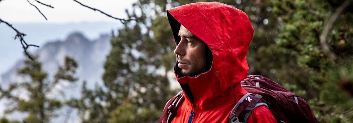 一般而言,防水外套不論遇到多大的雨勢,都能透過衣料的特性使水珠無法穿透,防止水分接觸皮膚。而表層的DWR防撥水塗層會隨時間逐漸耗損,但並不會影響布料本身的防水功能,因為防水外套的重點在於在於「防水薄膜」。