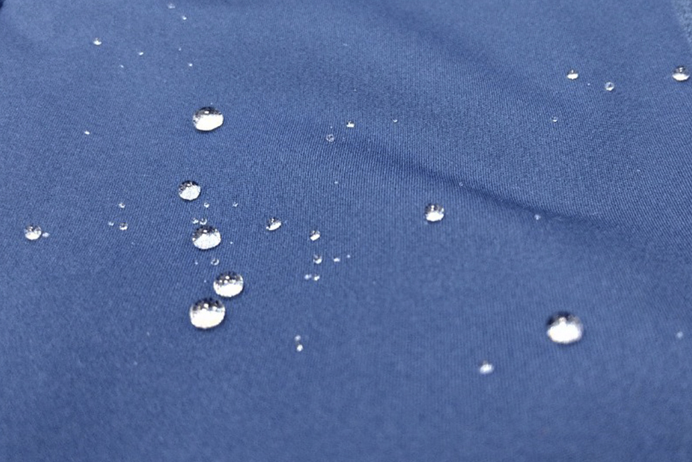 指的是衣料的疏水性(Hydrophobic)。在衣物表面塗上一層化學塗層,小量的雨滴或水份濺到到布料時,會在表面凝結成水珠後滑落,以減少衣物被水滲透的機率,使衣服不至於直接被浸濕,讓內層衣服與身體維持乾爽。