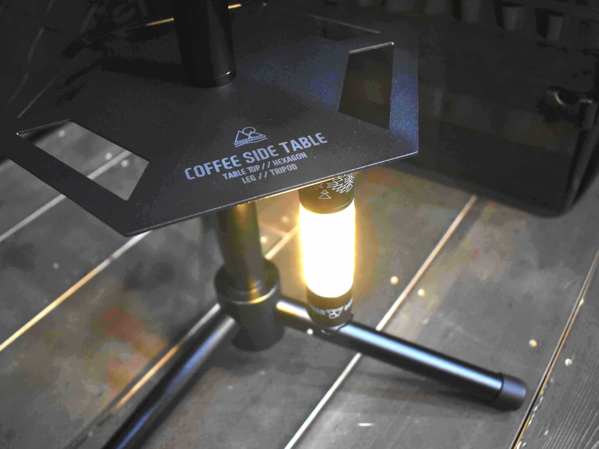 由三腳架有一個支架,因此可以將其放置在靠近膝蓋之間的位置,使其可用作個人桌子。