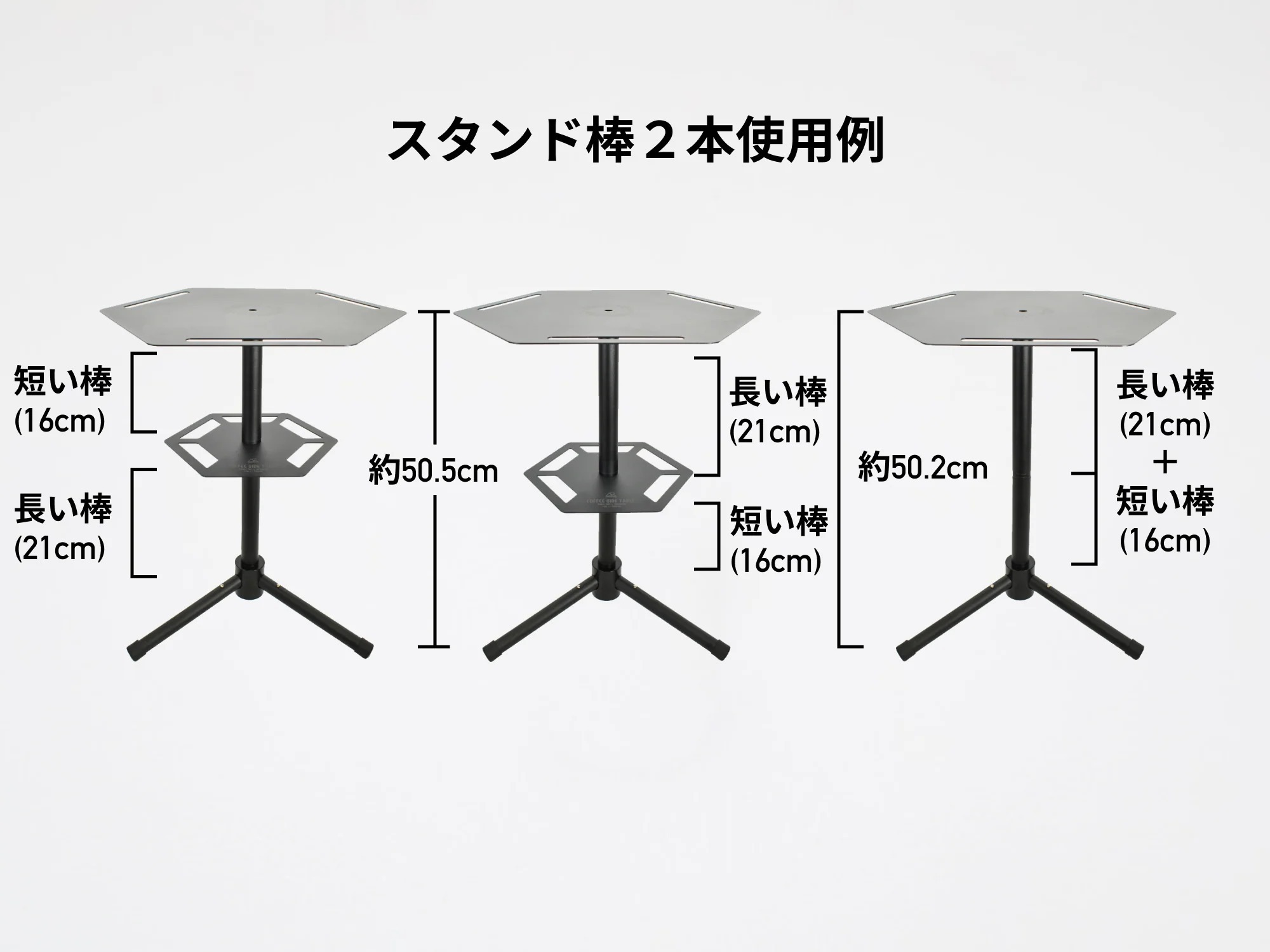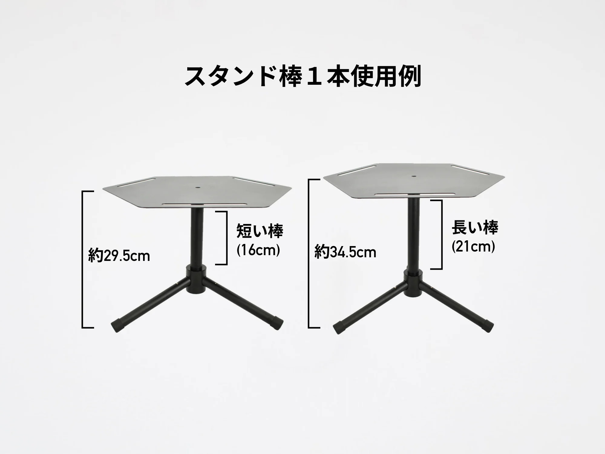 六角形桌面・底板・立桿各1根(16cm)(21cm)