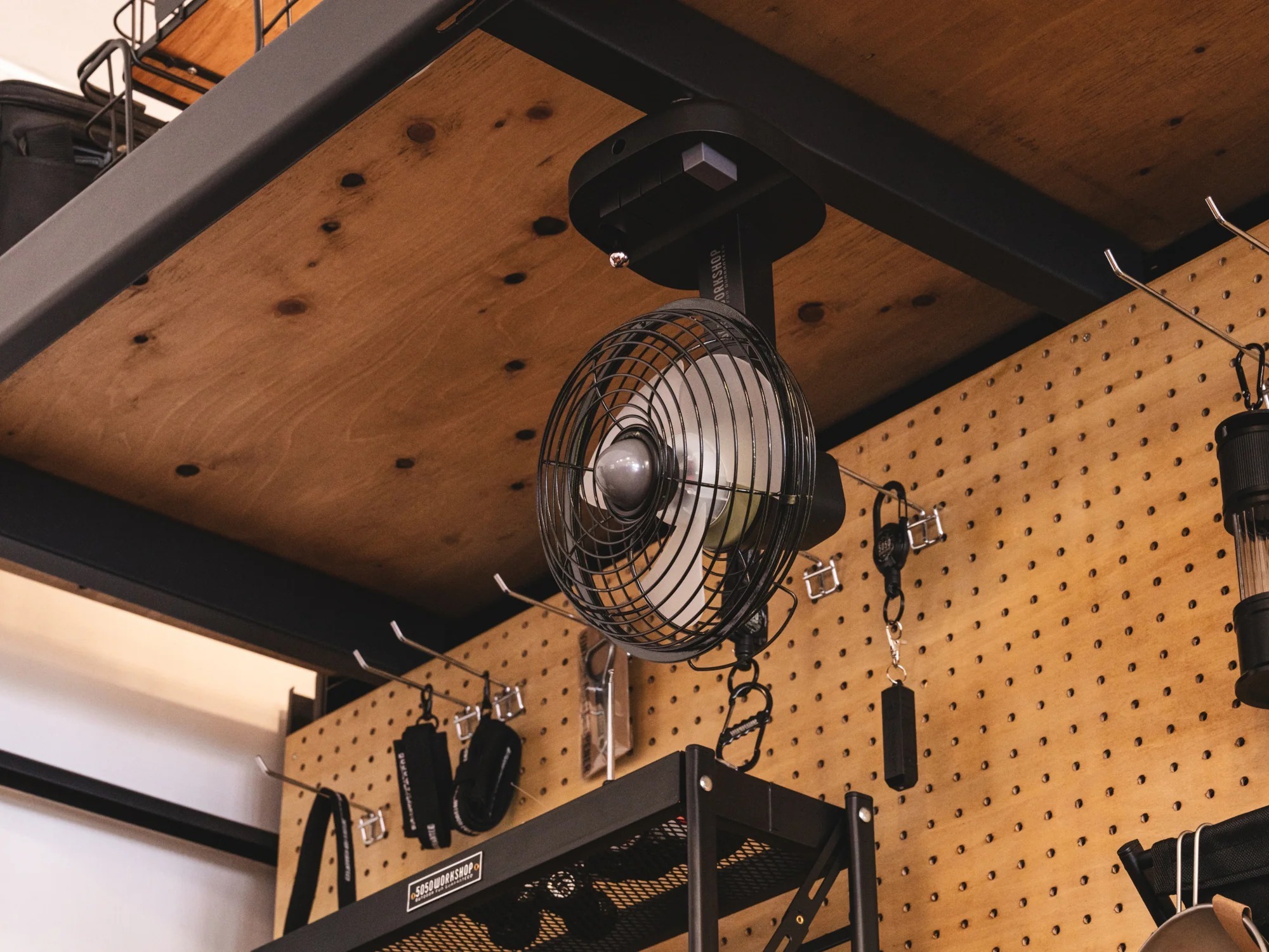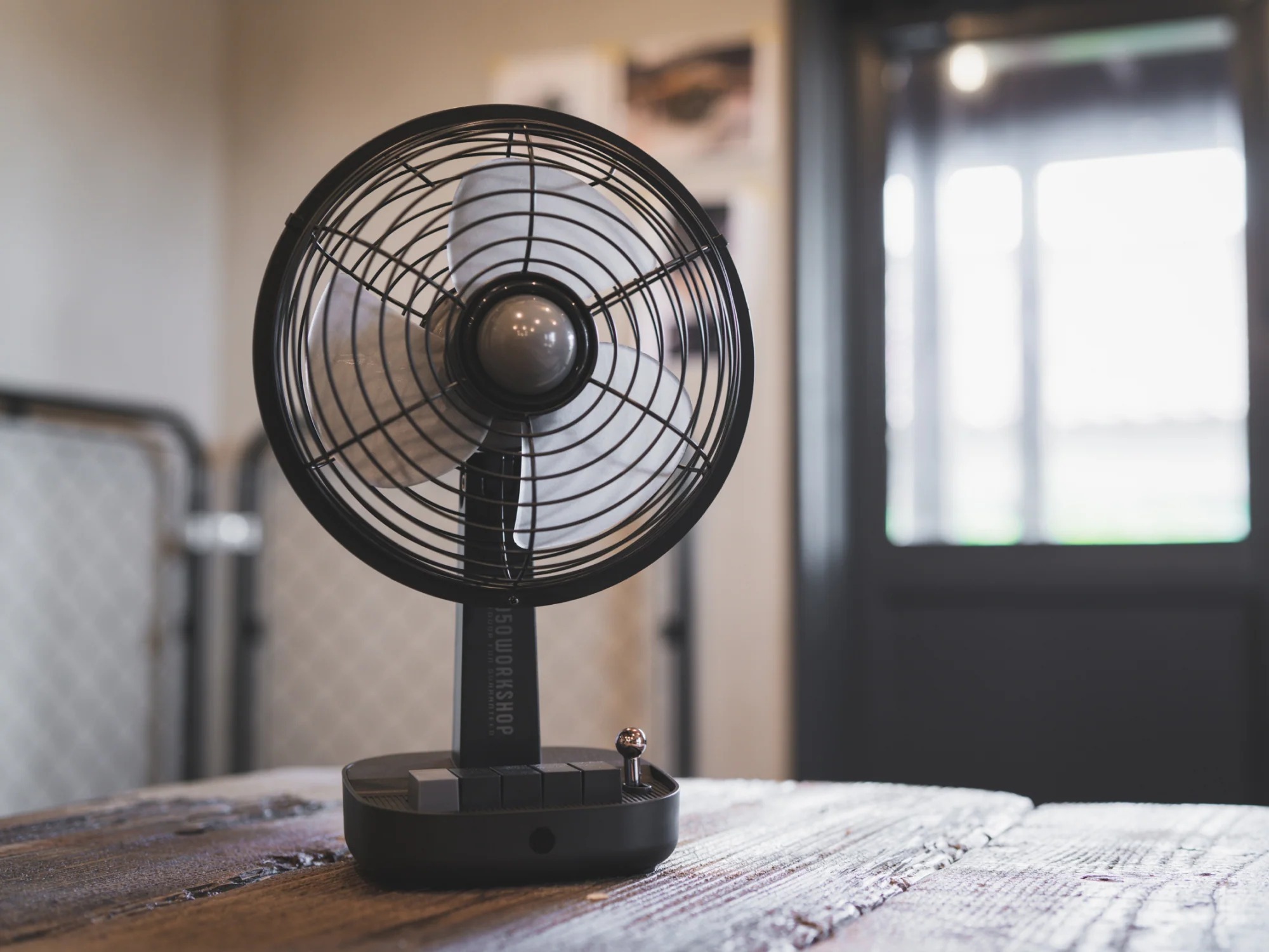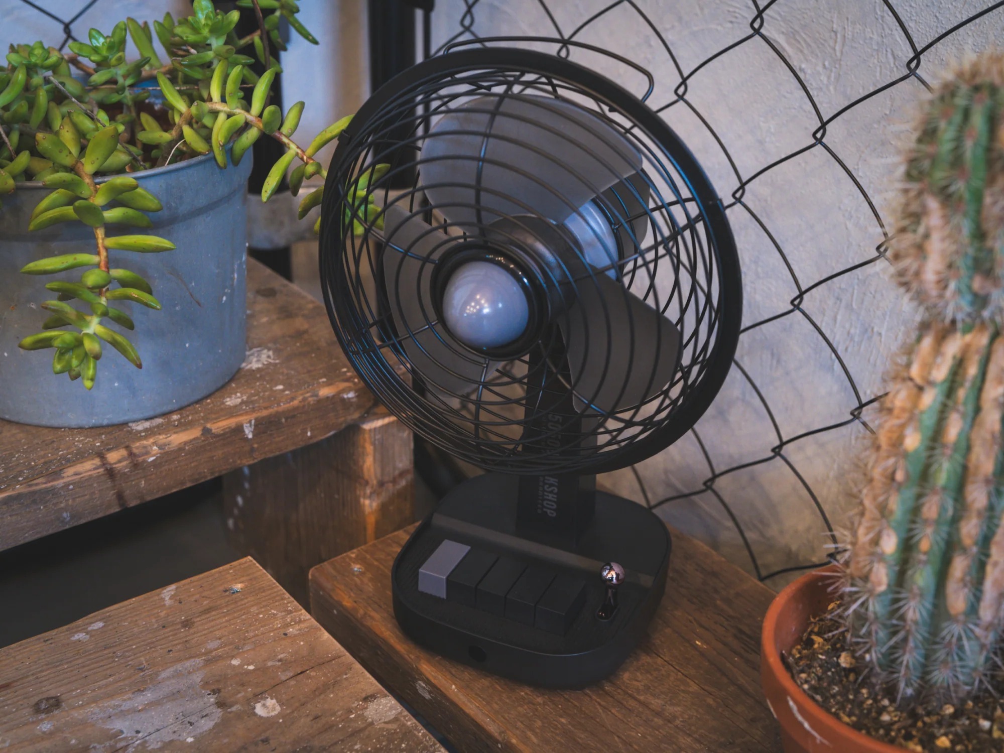 一款無線桌上型風扇,融合了復古設計與現代功能。
