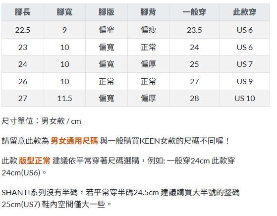 請留意此款為 男女通用尺碼 與一般購買KEEN女款的尺碼不同喔!