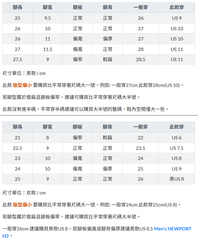 若腳型屬於瘦扁且腳板偏窄,建議可購買比平常穿著尺碼大半號。