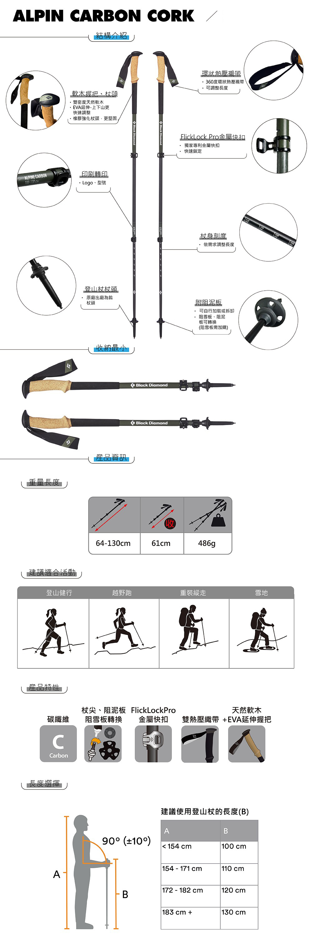 【Black Diamond】男款 ALPINE CARBON CORK 登山杖 一組兩支 / 112514