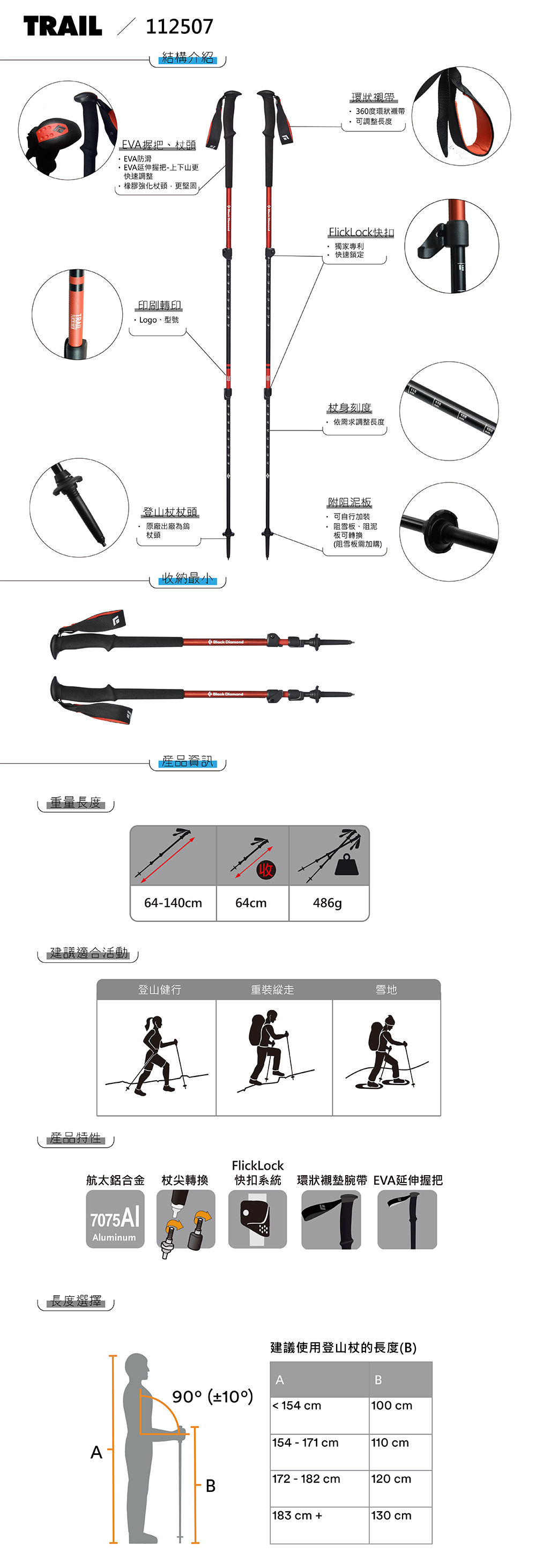 北美銷售第一超鋁合金伸縮式登山杖,適用於各式登山越野地形。