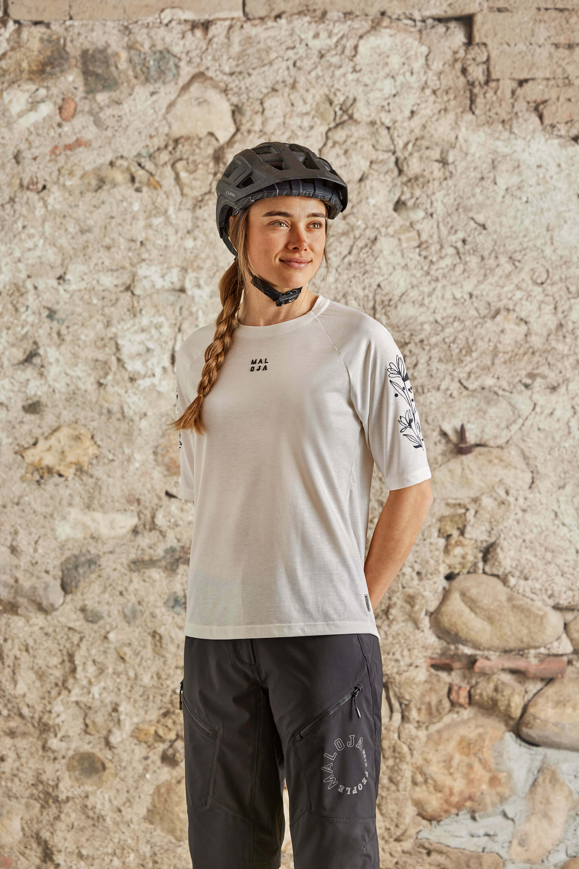 袖口向上延伸的膠印花朵圖樣靈感來自阿爾卑斯高山花卉,胸口有方正Maloja LOGO設計。