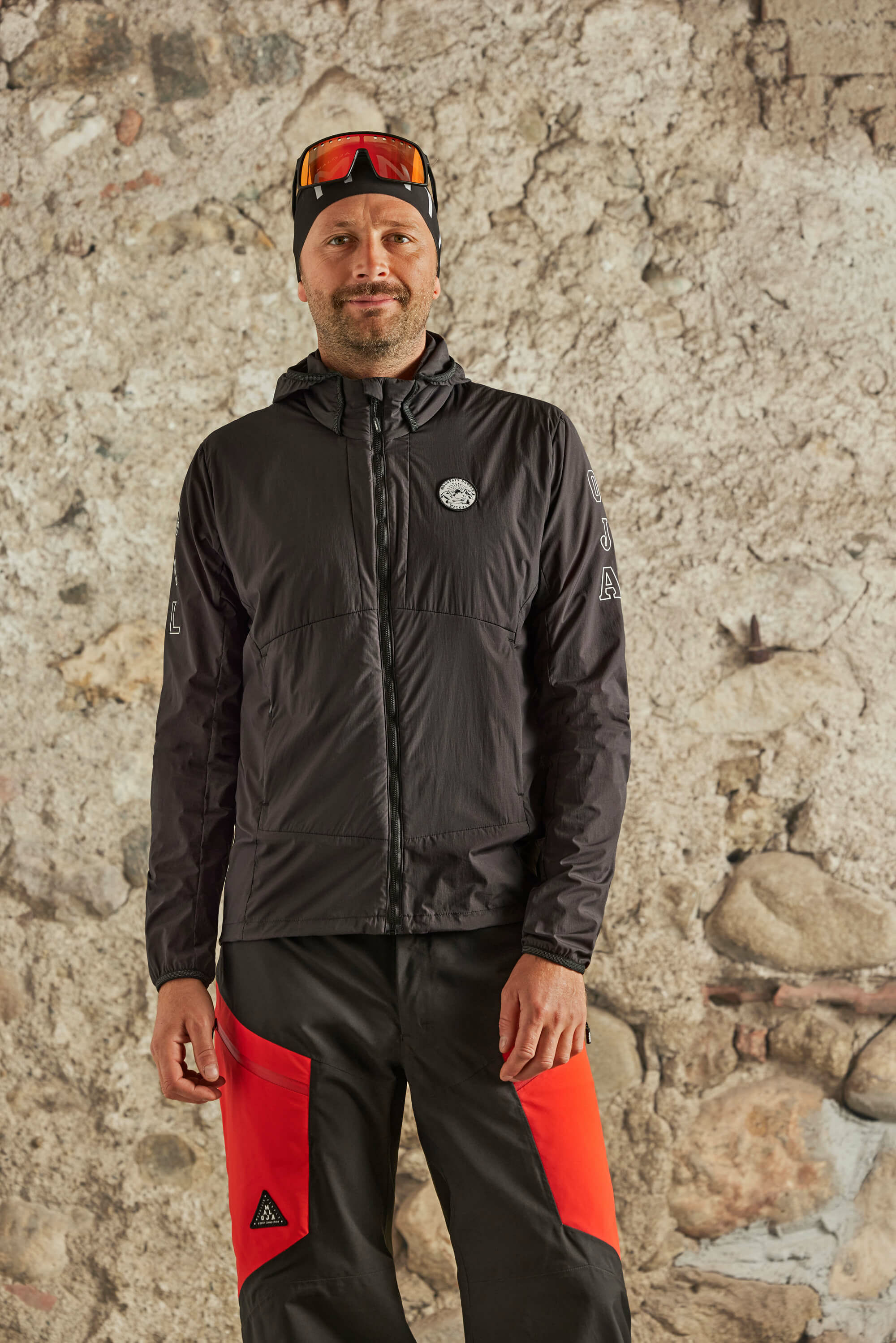 袖口和帽子上有反光帶設計,用於固定填充物的刺繡星星,左口袋上有圓形的Maloja徽章。