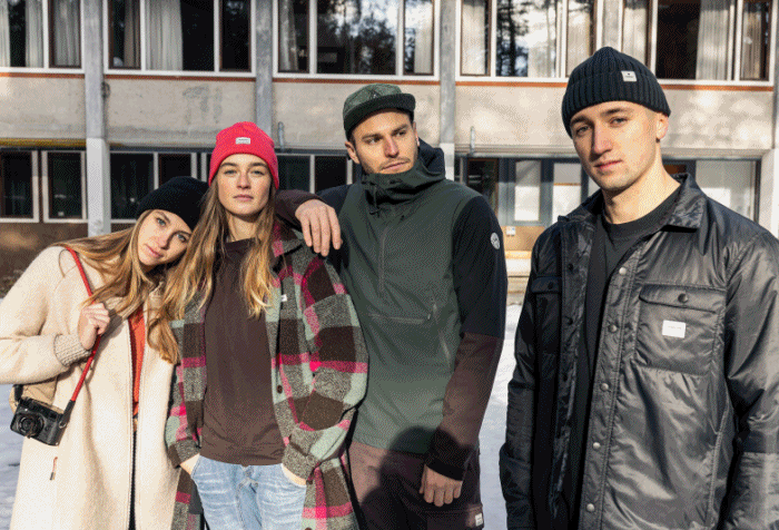 基本款捲袖T恤,採用有機棉製成,兩款3D印花可選擇:滑雪旅遊、北歐滑雪。