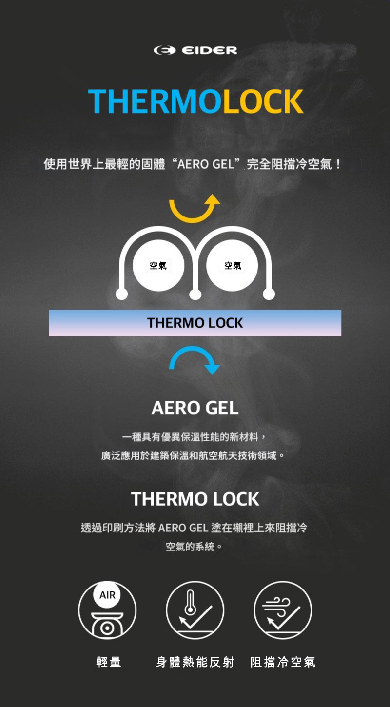 ■ 採用了Eider獨家開發的Aerogel印刷『THERMOLOCK系列』內襯,增強保暖性能