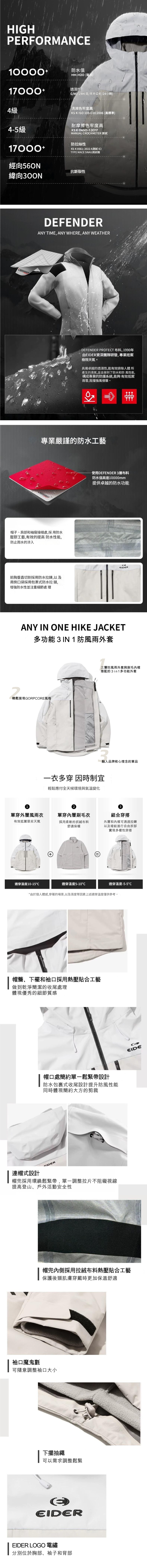 ■ 帽兜、肩部及腋下部分進行熱壓膠條處理,提升防水效果