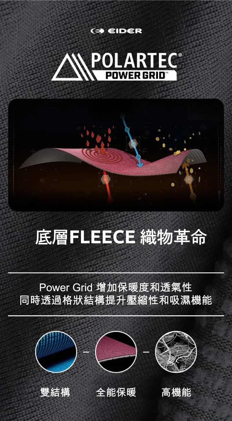 ■ 使用Polartec Power Grid 功能性面料,透過格狀結構提升保暖性和透氣性,同時減輕重量