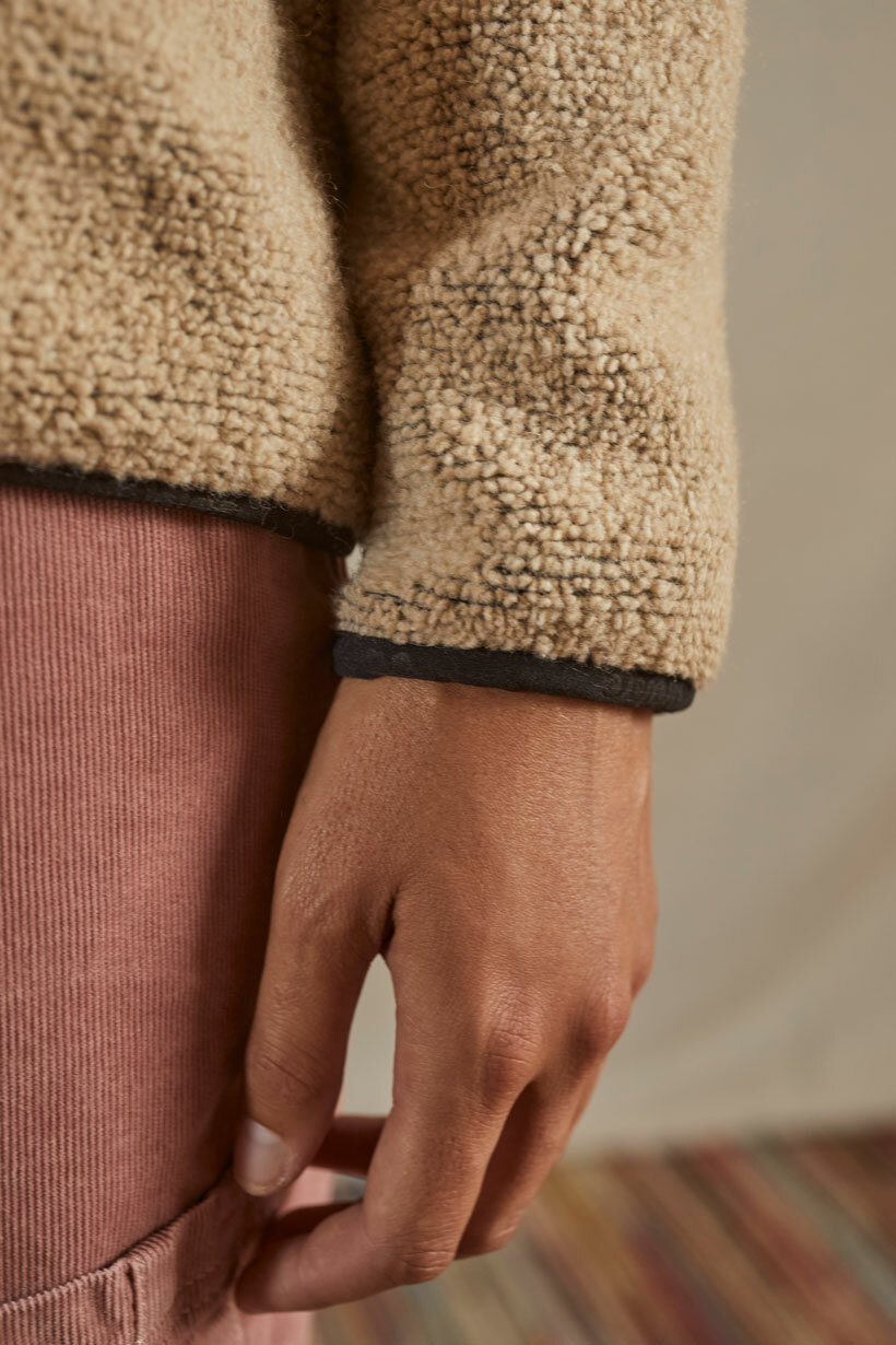 由回收羊毛、聚酯和聚丙烯酸纖維製成,具有如羊皮般特殊的紋理。