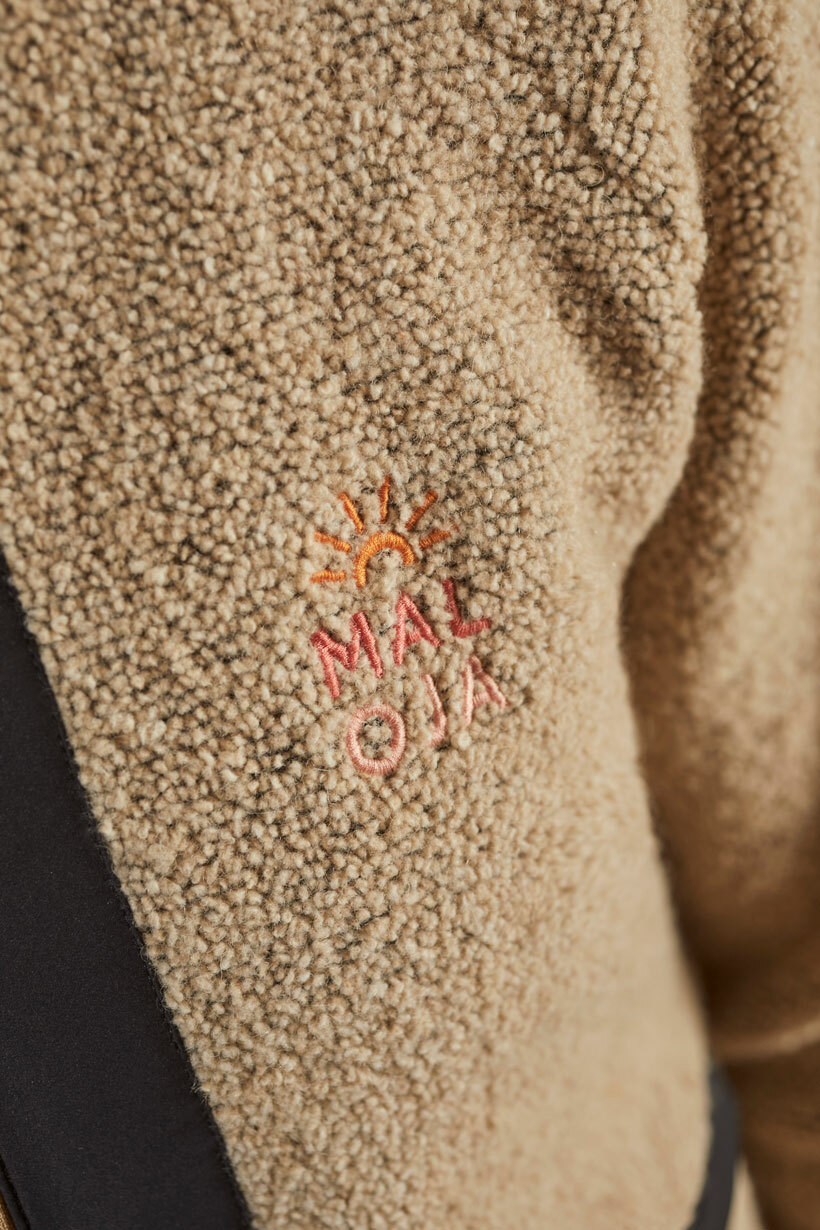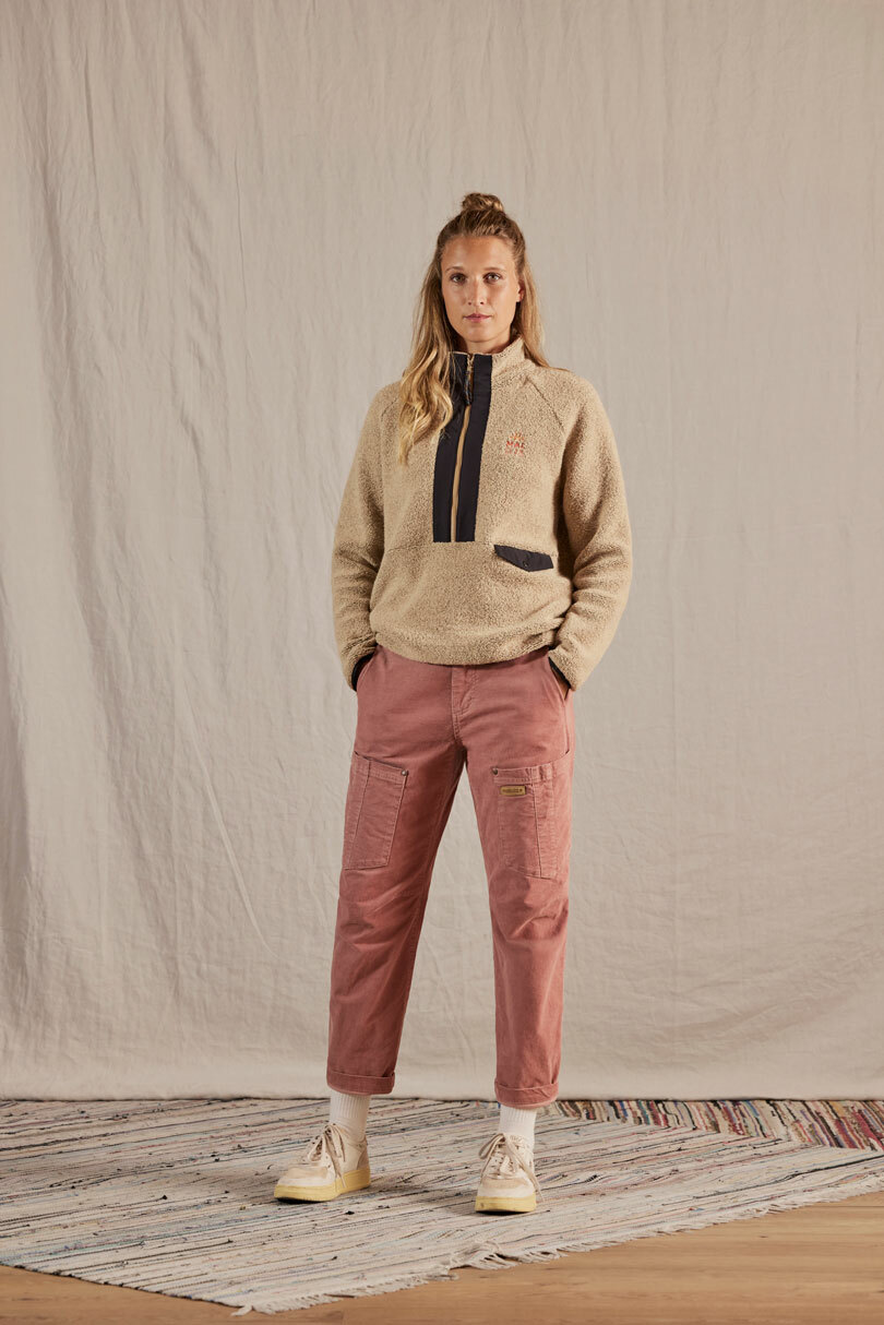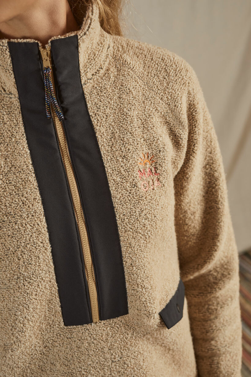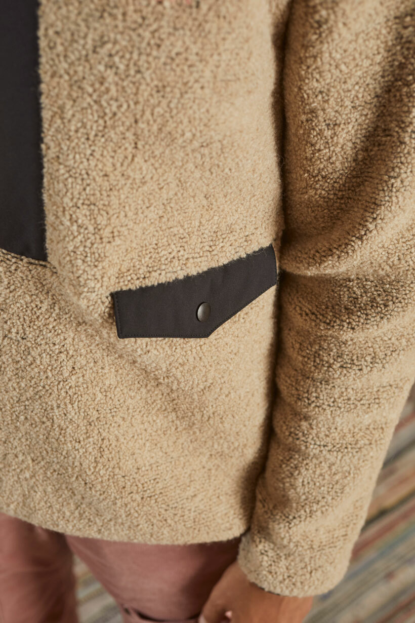 以再生羊毛製成的保暖上衣,採用半拉鍊和高領設計。
