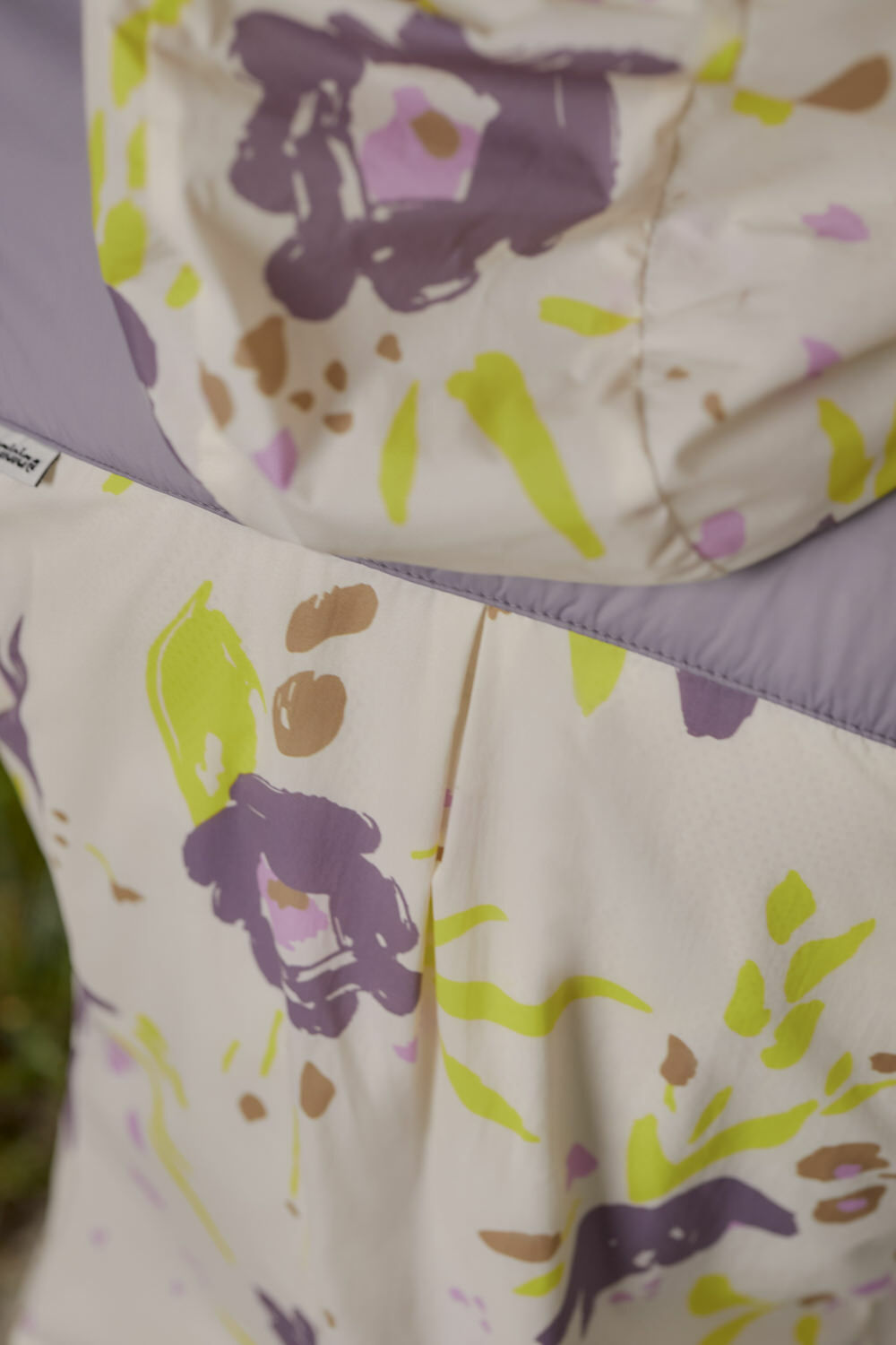 在外套的腹部、胸部和上背部使用輕量化 cambium® AIR 保暖材料,提供良好的保暖性能與高透氣性。外層採用超薄的 Moon Stretch 材料,具有彈性與透氣性,背部的雷射孔洞設計在進行高強度活動時則有更佳的通風效果。外層材料部分防風,並經環境友善防潑水處理。兩側的拉鍊口袋位於背包腰帶上方,方便使用時輕鬆取物。