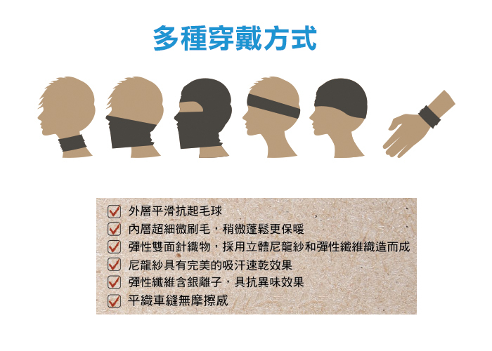■ 透氣、保暖、抗異味的多功能魔術頭巾