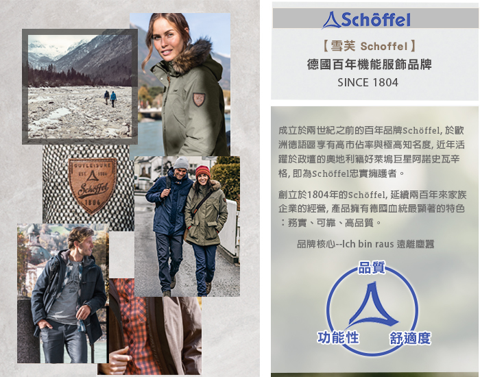 Schoffel 2018 Wintertime系列, 雪花臂章使人聯想靜謐明亮的冬季時光, 獨特寬領設計, 凸顯女性柔美頸項, 亮眼外觀, 細緻縫線, 舒適透氣的Medium fleece, 保暖排汗, 適合日常穿著