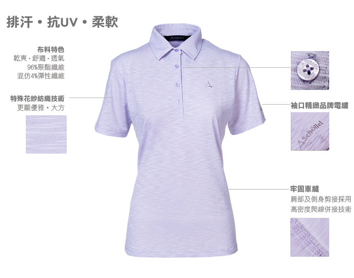 【Schoffel】女彈性排汗透氣抗UVPOLO衫 / 9SL60-10051-[桃]