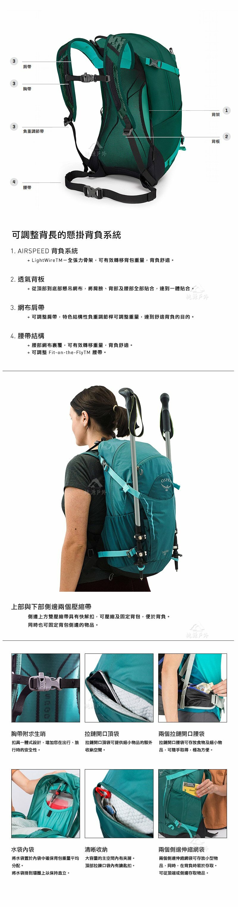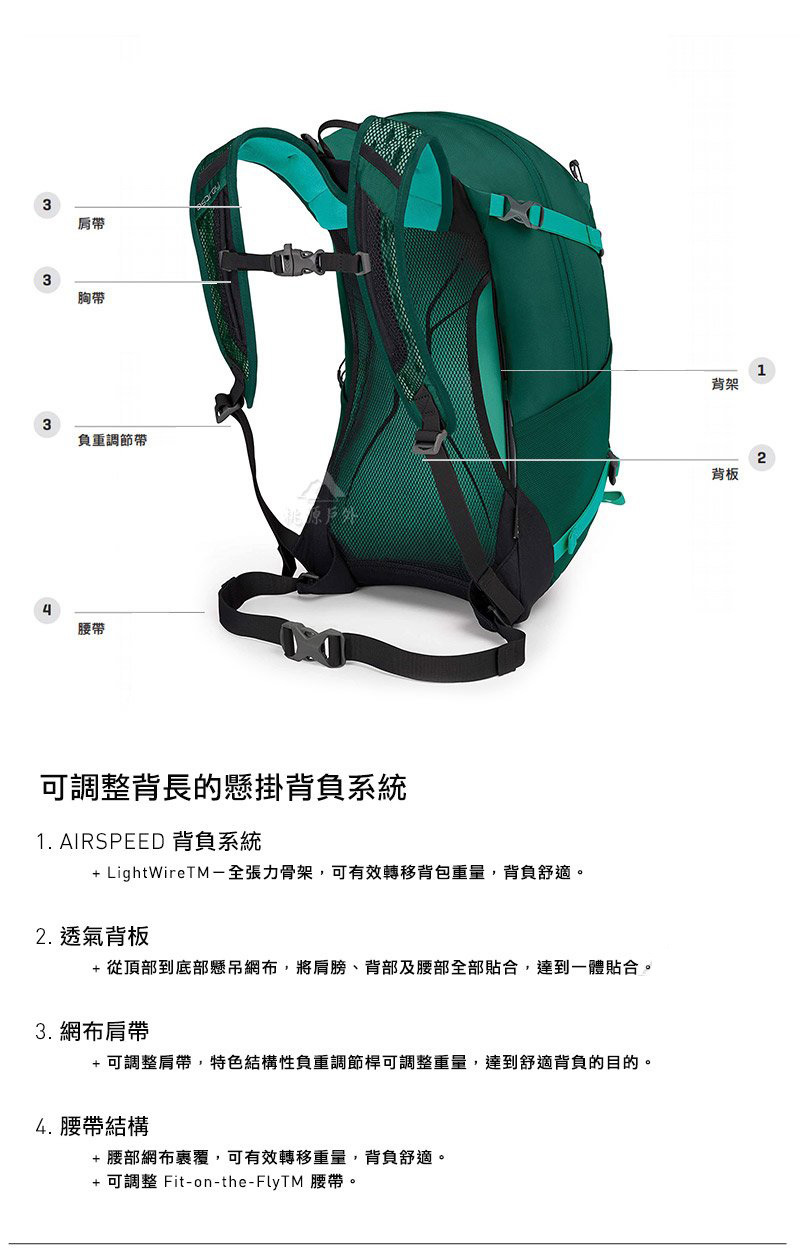 .使用AirSpeed™框架系統,減輕背部的重量,提升透氣通風背負時的舒適感。