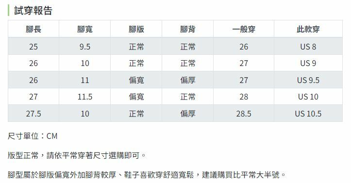 腳型屬於腳版偏寬外加腳背較厚、鞋子喜歡穿舒適寬鬆,建議購買比平常大半號。