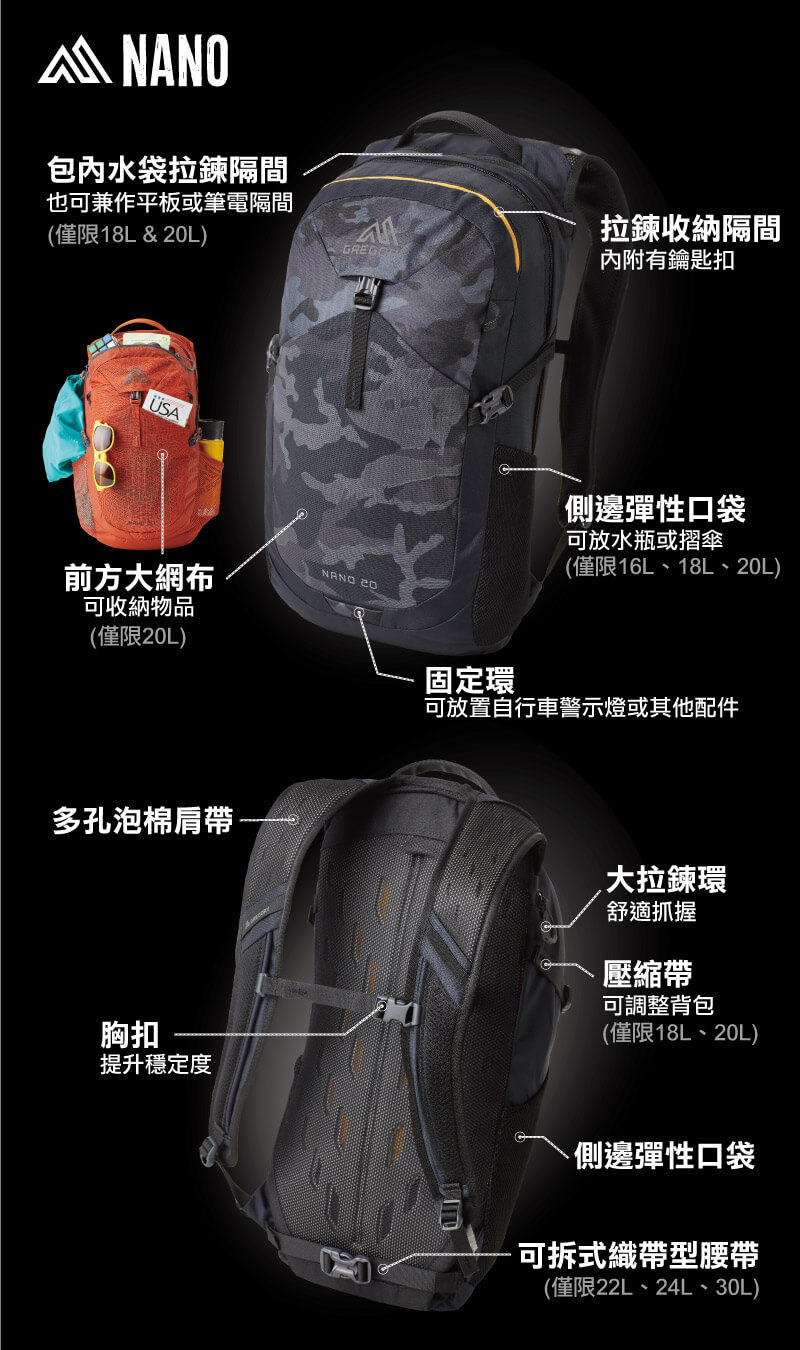 帶襯墊的透氣網狀肩帶配有胸扣袋與水袋佈線環