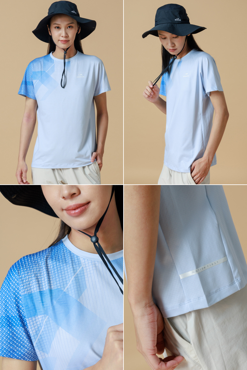 【EIDER】女透氣印花短袖圓領衫 / 22EDWM22221-[粉、藍]