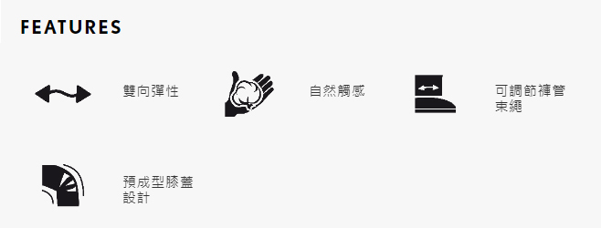 彈性褲頭及腰帶環設計。兩側有斜插口袋及後方兩個魔鬼氈口袋,使用十分方便。