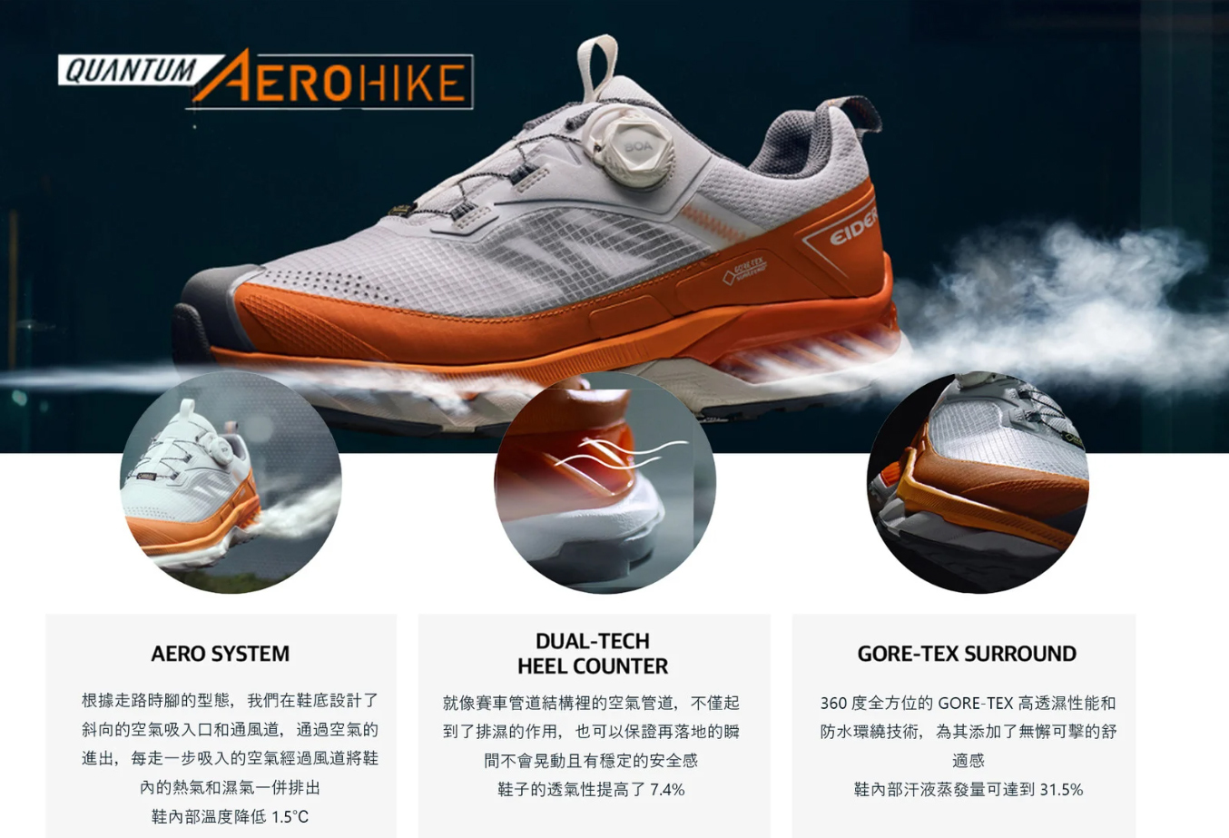 鞋內部汗液蒸發量可達31.5%、鞋內部溫度降低1.5C、透溼提升7.4%