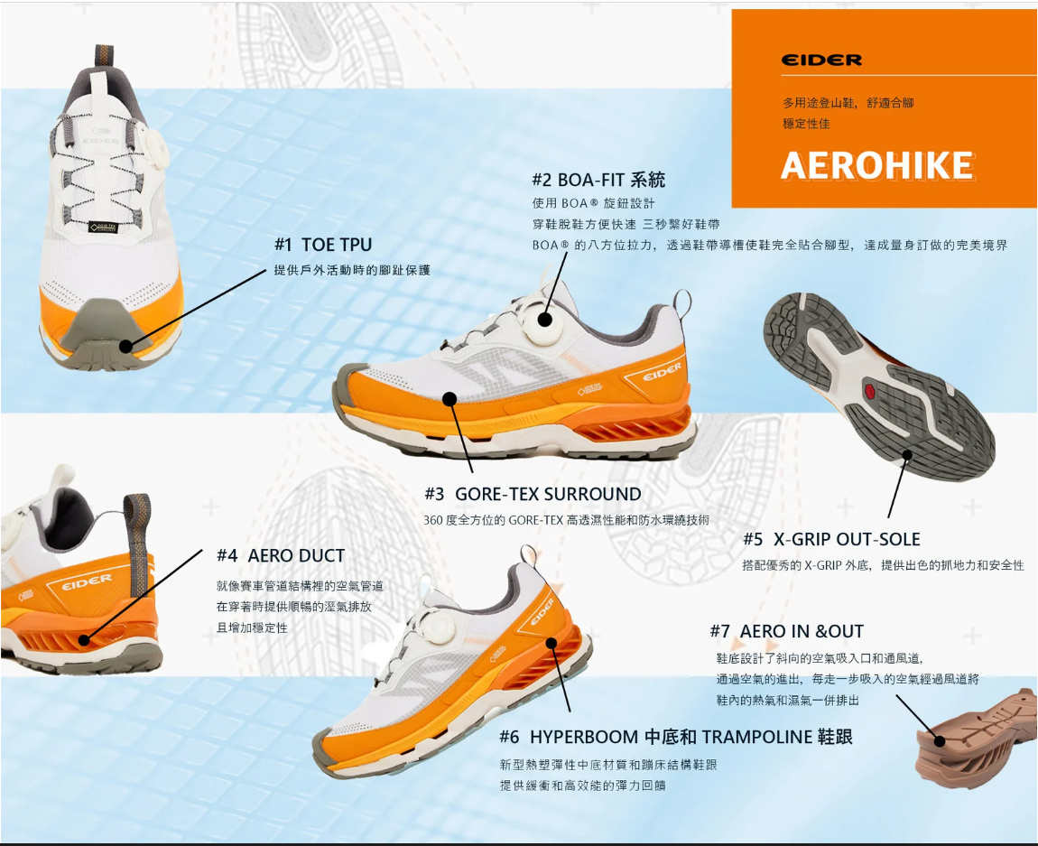 ■ Aero duct設計:靈感來自賽車管道裡的空氣管道結構,提供順暢的濕氣排出和在落地時的穩定性。