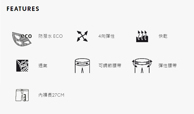 Multi Stretch 為輕量、適合四季穿著的材質, 運用於單車及多種活動的短褲, 由聚脂纖維和彈性纖維混紡而成的高品質纖維, 擁有四向彈性, 提供高度活動靈活度及快乾機能 ![]() |